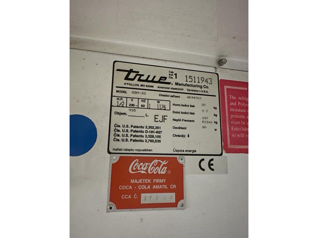 Dvoudvéřová prosklená lednice TRUE GDM-33 100x74x199cm