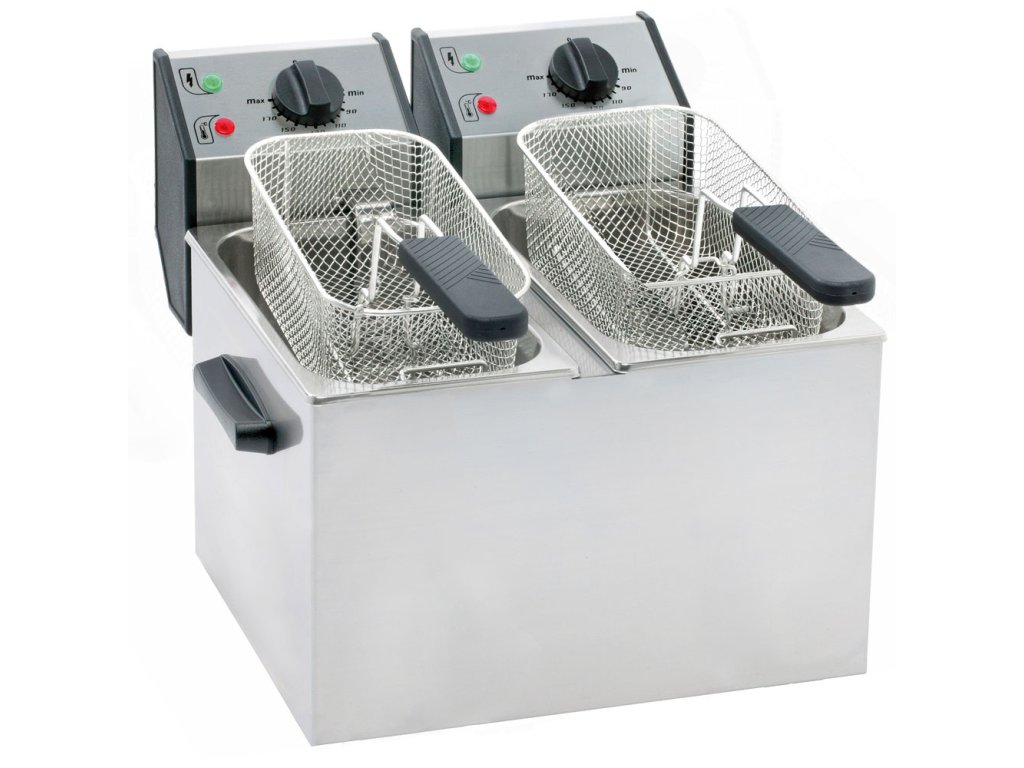 Fritéza od firmy Roller Gril s rozměry 32×39×42,5 cm s objemem 2×5 l. fritéza je vybavena funkcí studené zóny, automatického filtrování oleje, bezpečnostním termostatem, regulací teploty. Košík a víko jsou odolné vůči vysoké teplotě. Je vhodná do všech gastronomických zařízení.