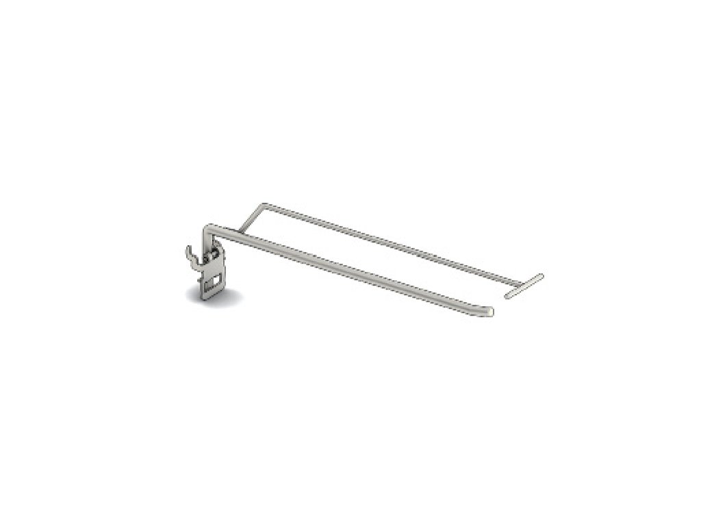 Jednoduchý háček s úchytem na cenovku na děrovaný panel