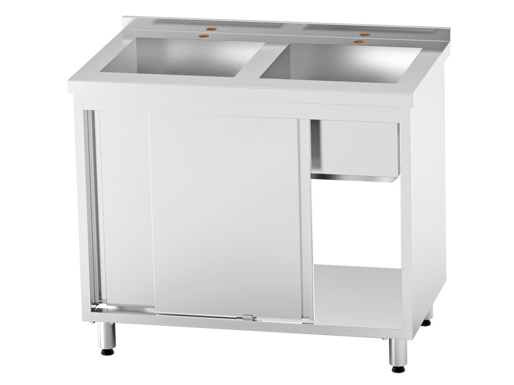 - Zboží: Nerezový dvoukomorový dřez se skříní s posuvnými dveřmi.