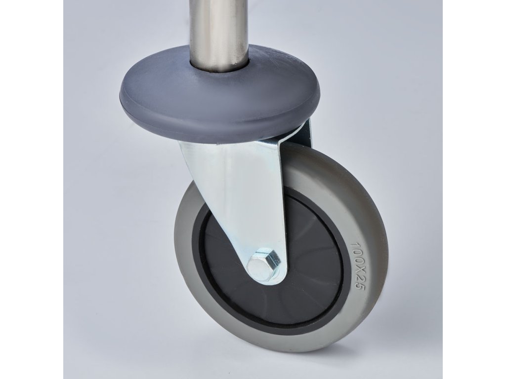 Číšnický servírovací vozík z nerezové oceli, 3 police, značky Stalgast, o rozměrech 86x54x94 cm. Určen pro malou i velkou gastronomii, zvláště doporučen pro restaurace, banketové a svatební sály, jídelny a catering. Vozík je vybaven gumovými koly (z toho 2 s brzdami). Rozměry pracovního povrchu: 800×500 mm. Maximální zatížení jedné police je 40 kg. Vlastní montáž.