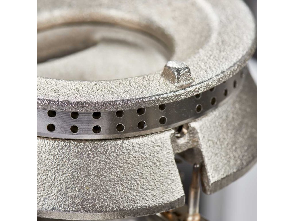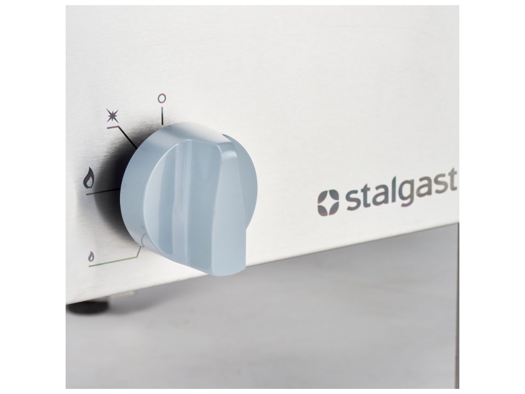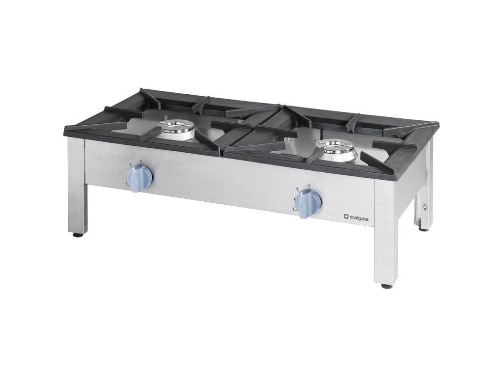 Plynová stolička s hořáky, dvojitá, od firmy Stalgast ze série Top Line. Litinové rošty, konstrukce z nerezové oceli, hořák 9kW (dvouokruhový), zapalovací plamínek (pilotní), bezpečnostní mechanismus proti úniku plynu, regulace síly hořáků až na 1/5 (úsporný plamen), regulace výšky díky nastavitelným nožkám (20 mm). Plynová stolička je přizpůsobena objemným hrncům od 50-100 litrů. Ideální pro restaurace, hotely, jídelny, catering a dalších gastronomických provozovnách.