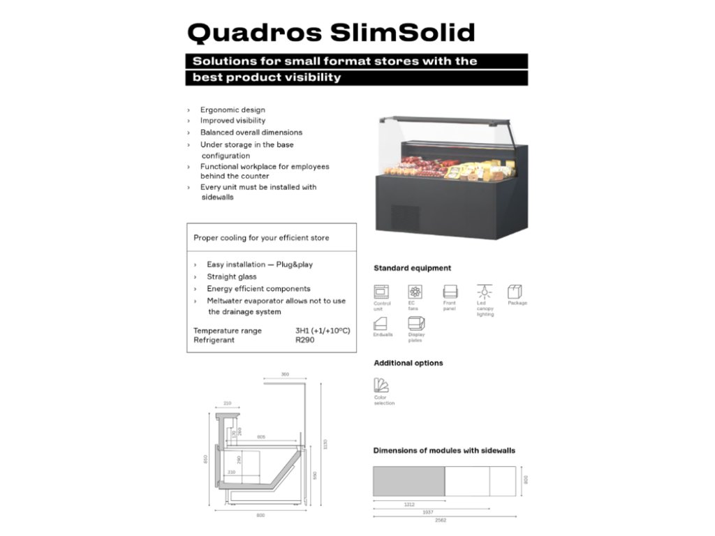 Potravinářská chladicí vitrína Quadros SlimSolid 163x80cm